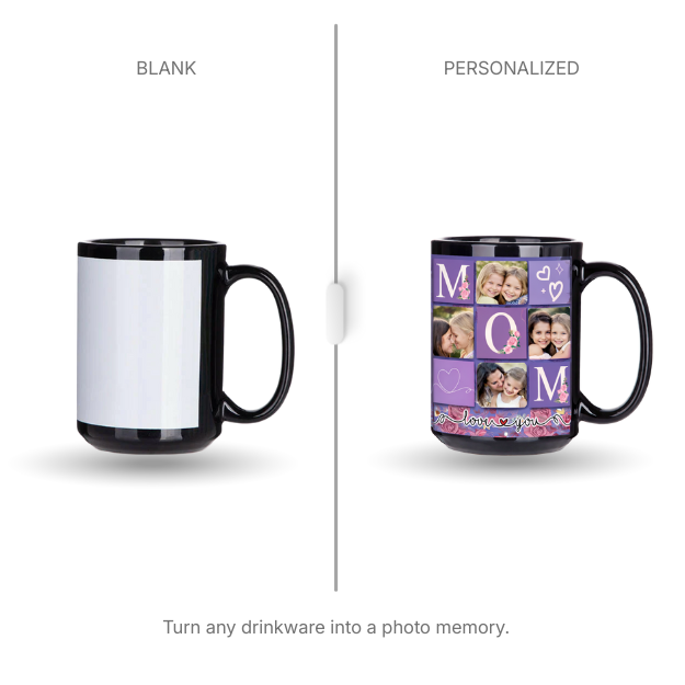This 15oz black ceramic mug features a crisp white sublimation patch that makes colors pop and designs stand out with striking clarity. The contrast creates a high-end look that instantly elevates logos, artwork, and personalized messages. Ideal for daily coffee, gifts, or custom orders, it’s a reliable best-seller that turns simple designs into pieces customers actually keep and use.