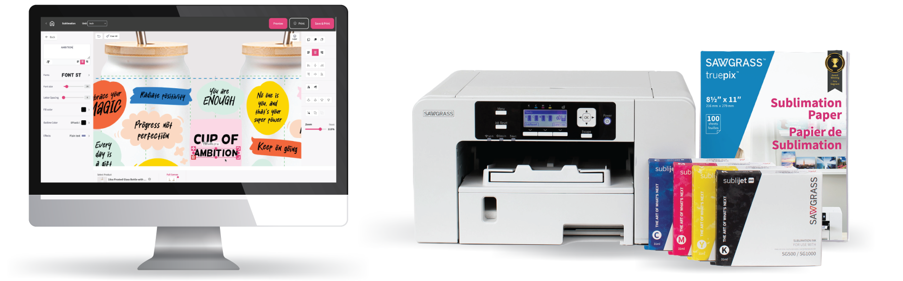 Purpose-built equipment, intuitive software, advanced inks, and specialty media work together as one complete system. The result is consistent, profitable production and retail-ready products you can rely on, from mugs and apparel to home décor and branded goods.