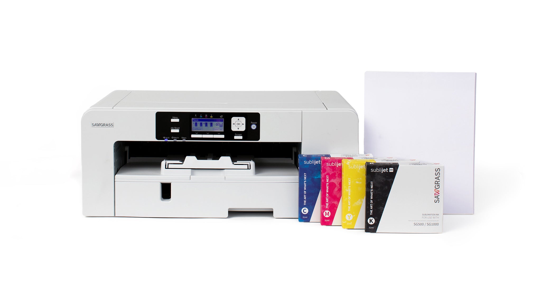 Sawgrass inks are water-based and solvent-free, designed with sustainability in mind. Cartridges and packaging are recyclable, and the inks meet strict quality and safety standards. Sawgrass inks are REACH compliant and RoHS certified.
